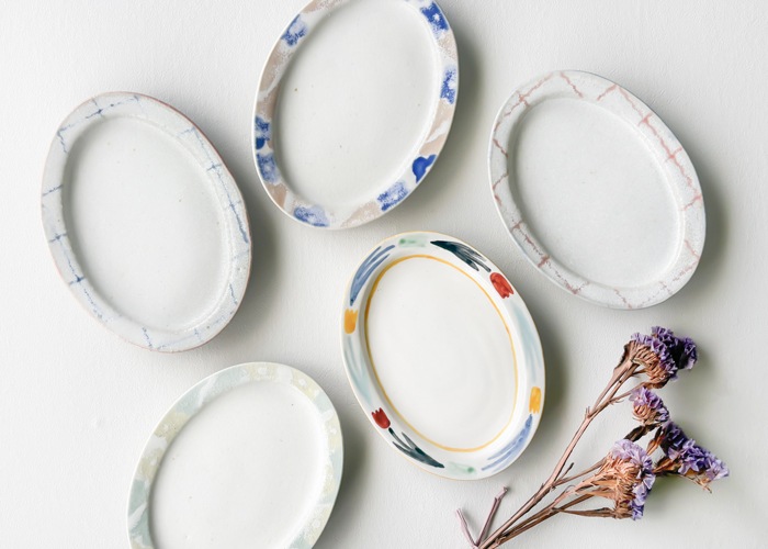 型を用いて成形した器に、絵付けを中心とした作品を制作されています。